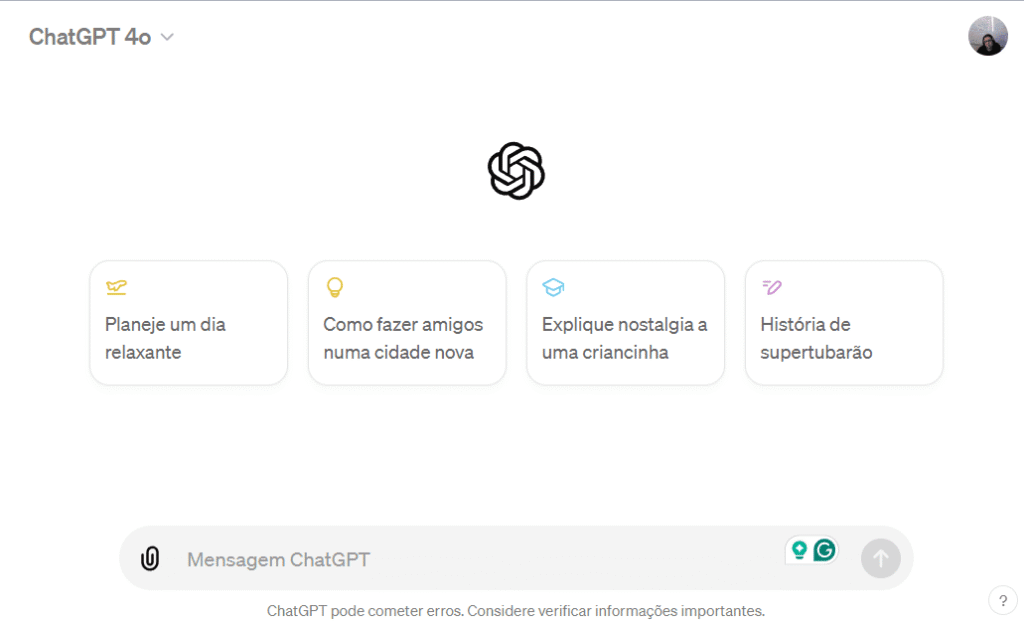 O GPT-4o pode ser acessado através da plataforma ChatGPT da OpenAI.