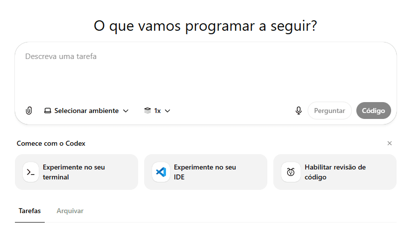 Você pode acessar o Codex na Interface Web (se estiver com seu navegador logado na conta OpenAI), clicando aqui.