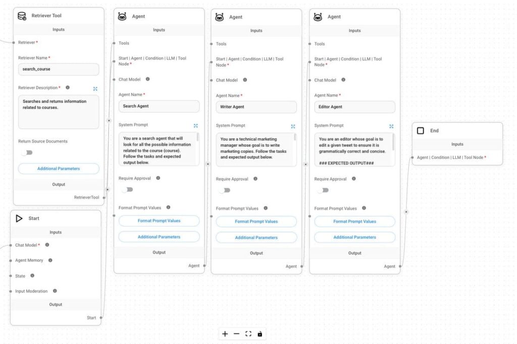 - Componentes pré-construídos: Biblioteca de ferramentas especializadas para diferentes funções, como busca na web, consulta a documentos e geração de conteúdo.