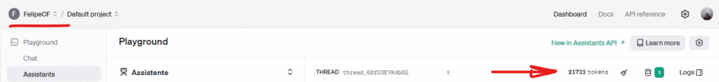 Exemplo de uso de Tokens com assistente (IA). Print do Autor em 2024.