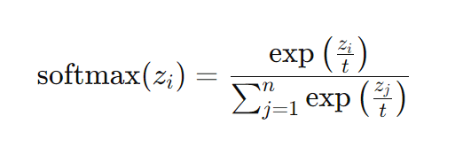 A equação da função softmax com ajuste de temperatura é:
